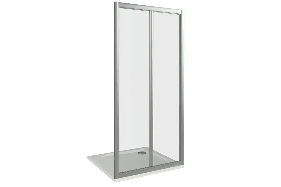 Душевая дверь Bas Infinity обладает размером 80х185 см. Конструкция состоит из двух складных секций. Устанавливается в облицованный кафелем угол или нишу ванной комнаты на поддон или непосредственно на пол со встроенным душевым каналом или трапом