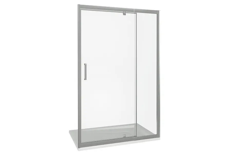 Душевая дверь Bas Orion обладает размером 90х185 см. Конструкция состоит из двух секций: одной неподвижной и одной распашной. Устанавливается в облицованный кафелем угол или нишу ванной комнаты на поддон или непосредственно на пол со встроенным душевым каналом или трапом