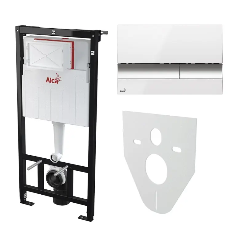 Инсталляция для унитаза Alcaplast Sadroмodul — это система, предназначенная для установки подвесного унитаза. Конструкция представляет собой прочную раму и бачок скрытого монтажа объемом 9 литров.