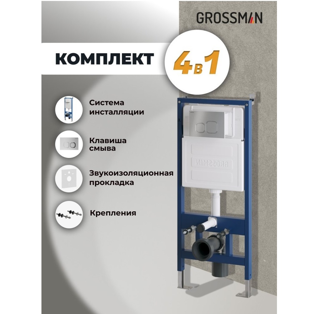 Инсталляция Grossman для скрытого монтажа унитаза + клавиша смыва Cosmo Хром матовый 97.02.110