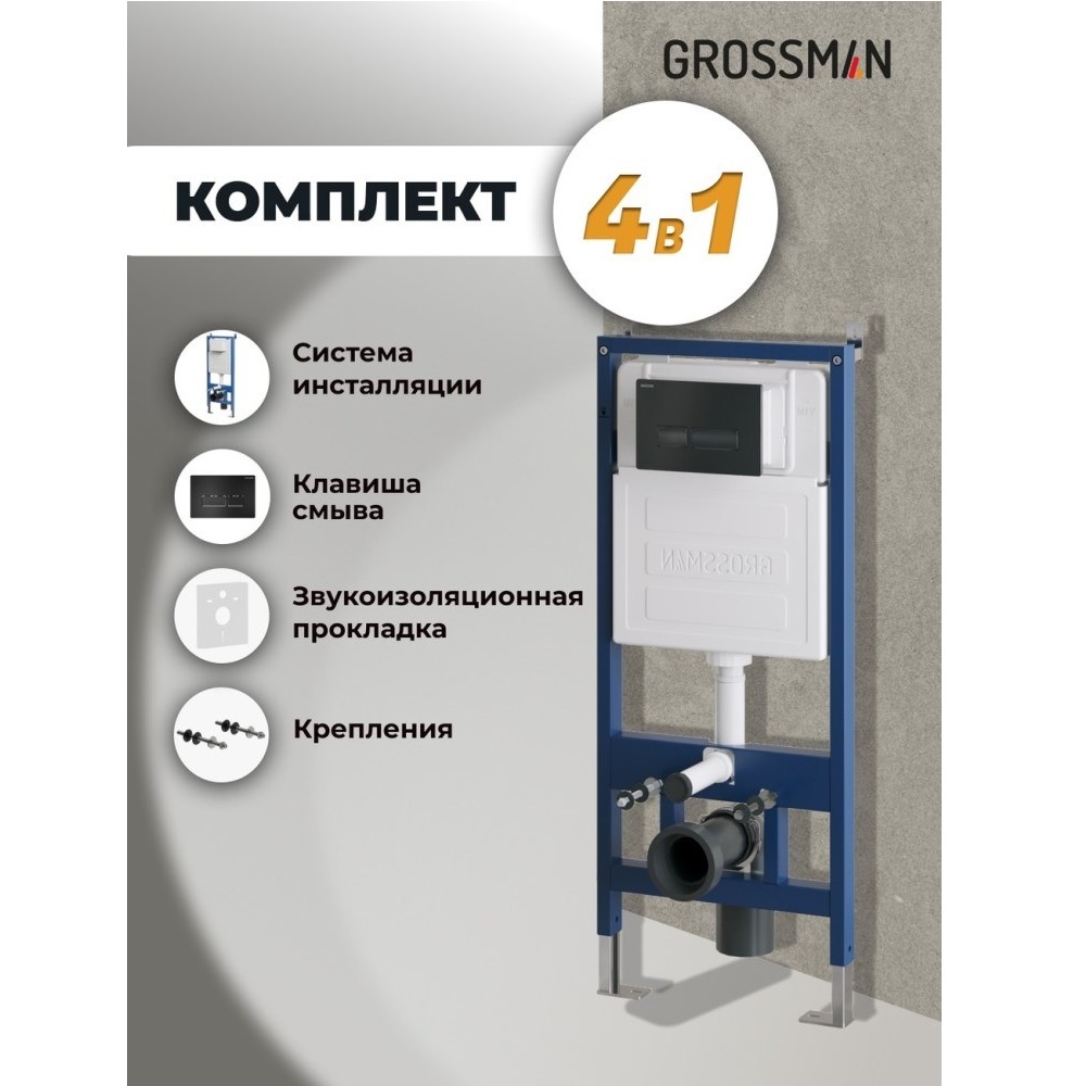 Инсталляция Grossman для скрытого монтажа унитаза + клавиша смыва Pragma Черный матовый 97.03.210