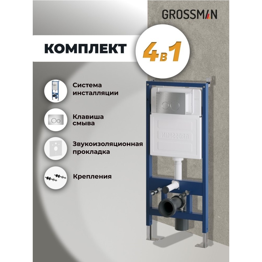 Инсталляция Grossman для скрытого монтажа унитаза + клавиша смыва Style Хром матовый 97.05.12M