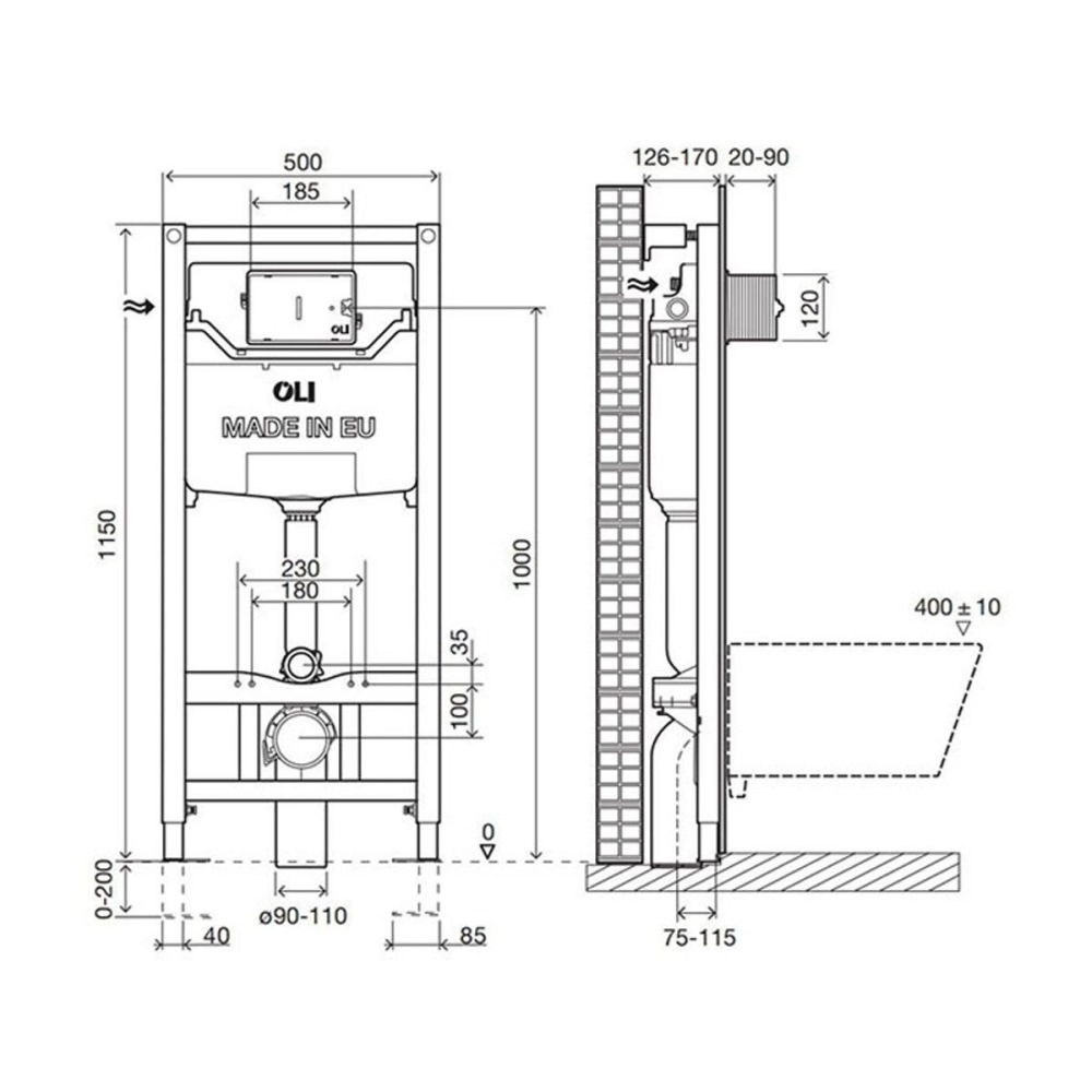 Инсталляция Oli Eco mechanic с кнопкой Slim — это система, предназначенная для установки подвесного унитаза. Конструкция представляет собой прочную раму и бачок скрытого монтажа объемом 7 литров.