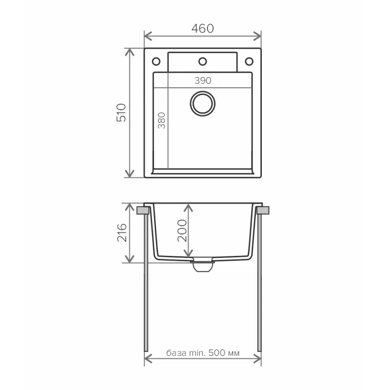 Мойка кухонная Polygran Argo имеет размеры 46х51 см., ширина чаши: 39 см. Прямоугольная форма. Цена указана за мойку со сливом-переливом.
