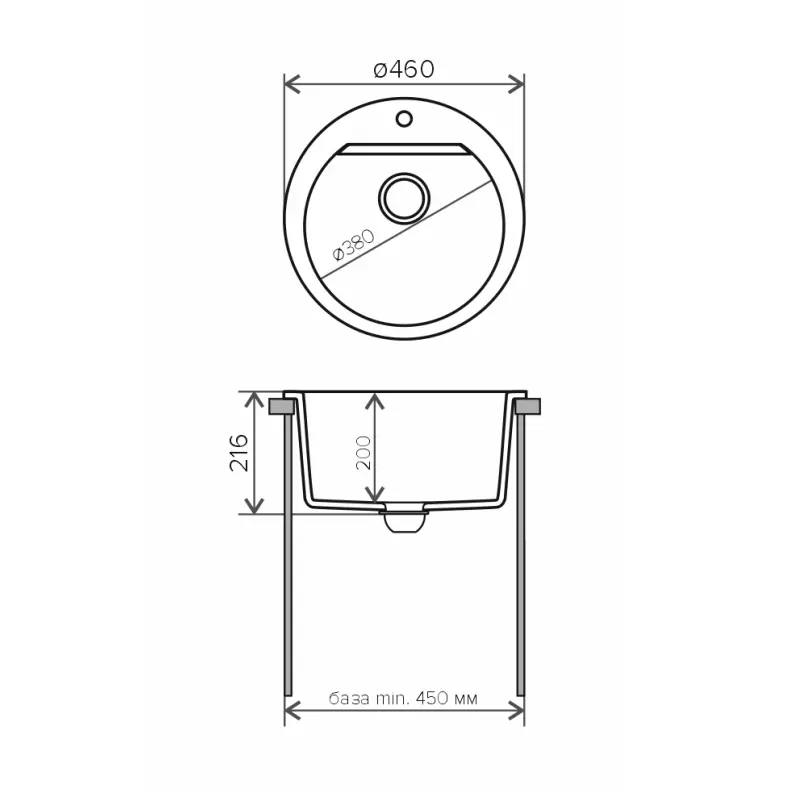 Мойка кухонная Polygran Atol имеет размеры 46х46 см., ширина чаши: 38 см. Круглая форма. Цена указана за мойку со сливом-переливом.