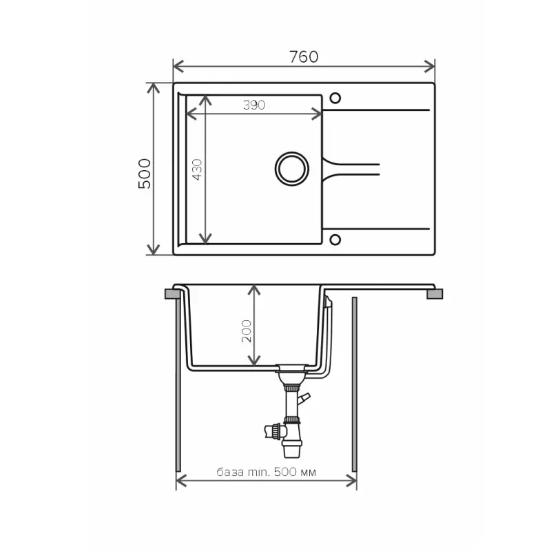 Мойка кухонная Polygran Gals имеет размеры 76х50 см., ширина чаши: 39 см. Прямоугольная форма. Цена указана за мойку со сливом-переливом.