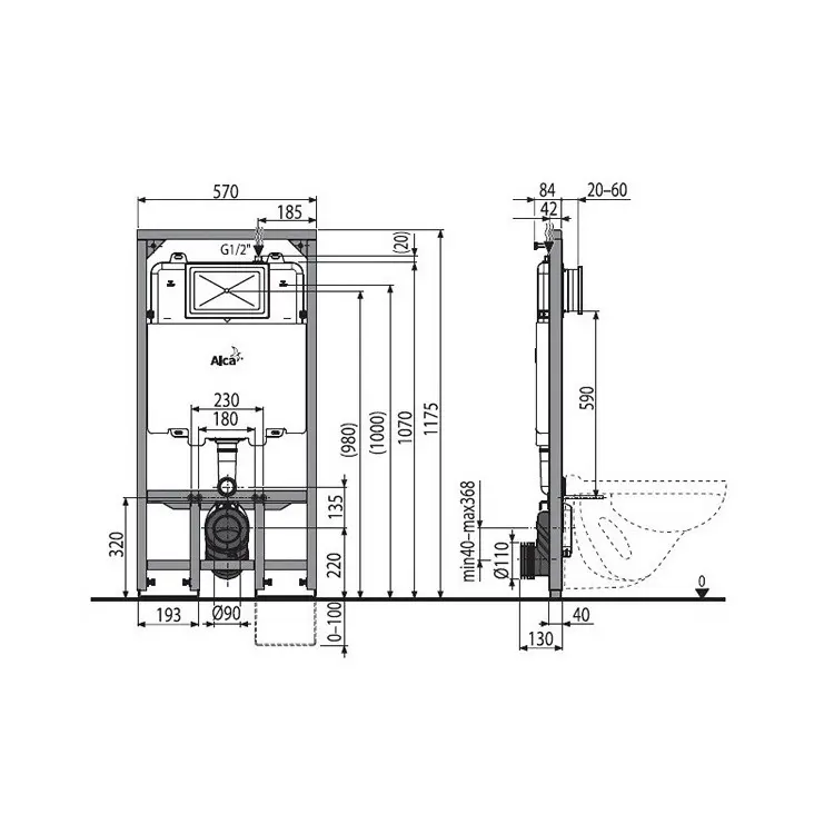 Скрытая система инсталляции Alcaplast Sadromodul Slim для сухой установки (для гипсокартона) высота 1,2 м