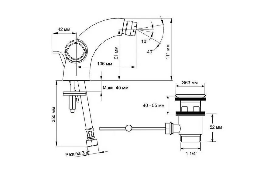 Смеситель для биде Jacob Delafon Elevation с донным клапаном E18873-CP