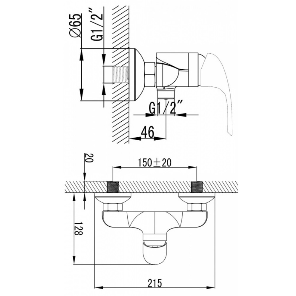 Смеситель для душа Azario Sintra без излива. Изготовлен из качественных материалов и имеет защитное покрытие, что способствует устойчивости к коррозии и резким перепадам температуры. Управление рычажное, настенный монтаж на два отверстия.