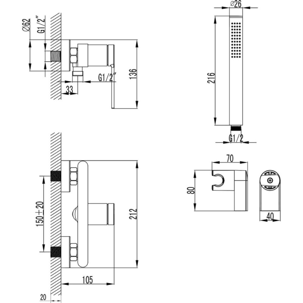 | Держатель для душа | В комплекте |
