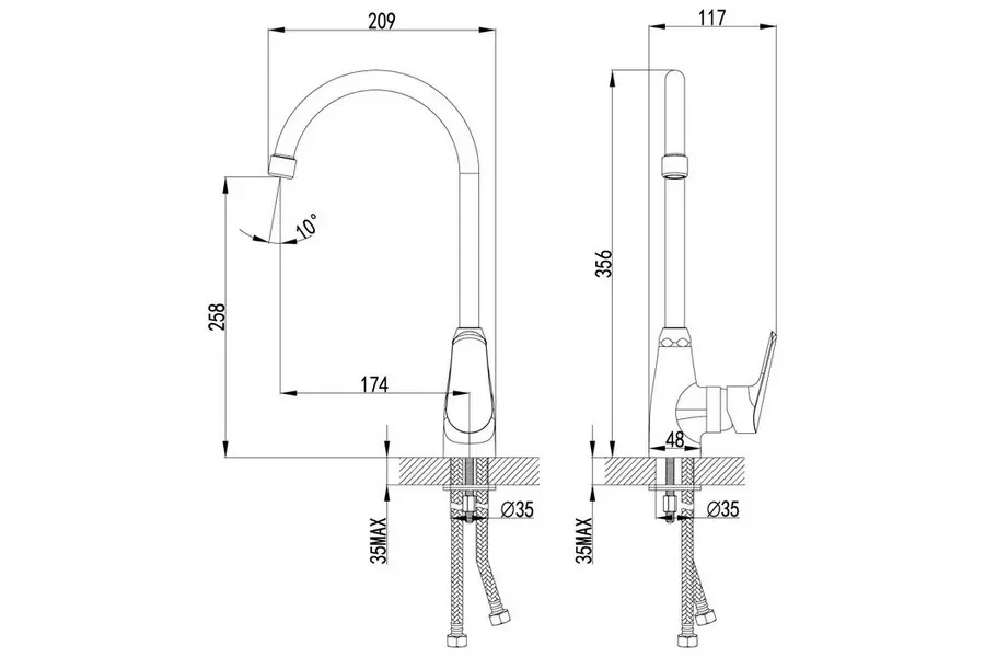 | Тип подводки | Гибкая, в комплекте |
