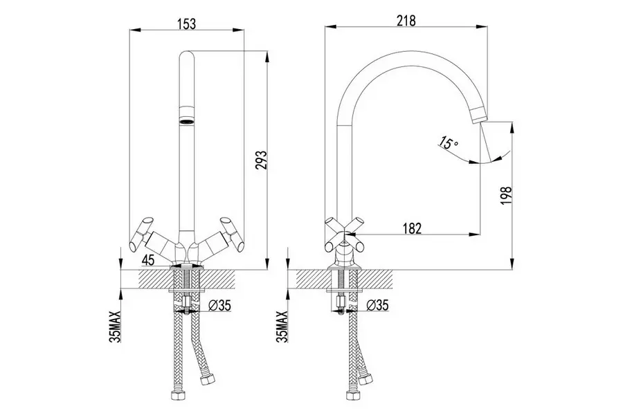 | Тип подводки | Гибкая, в комплекте |