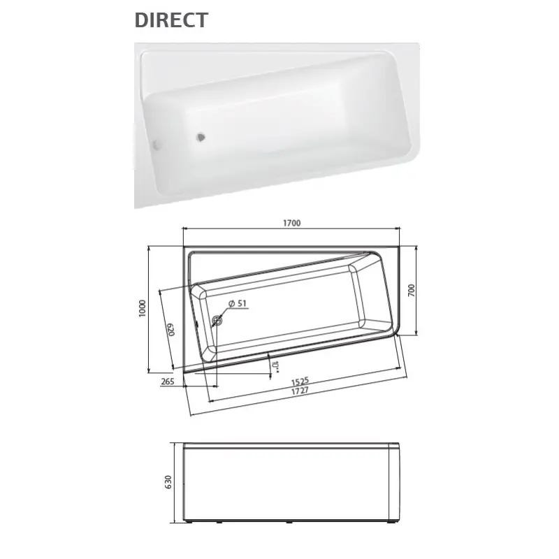 Ванна акриловая 1MarKa Direct 170х100 левая Белый 01дир1710л