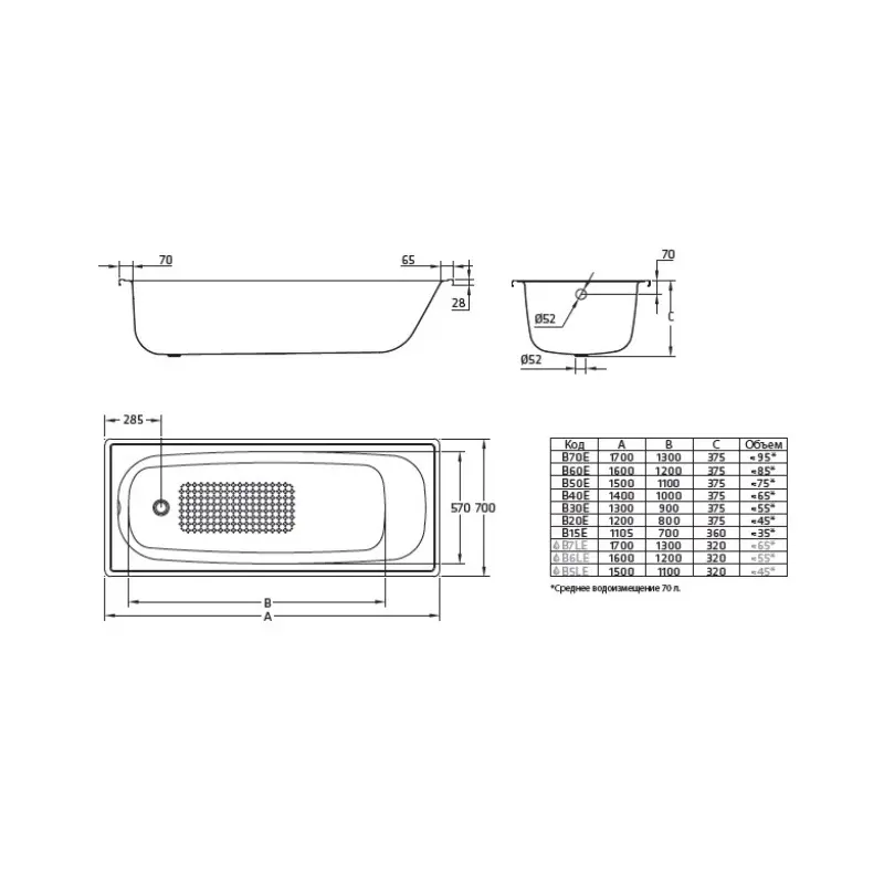 Ванна стальная BLB из коллекции Europa имеет размер 110,5х70 см. Форма прямоугольная. Ножки, установочный комплект, слив-перелив не входит в базовую комплектацию и приобретается отдельно. Дополнительно комплектуется смесителем, передней и(или) боковой панелью.